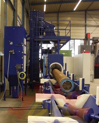 QG系列鋼管內(nèi)外壁拋丸清理機(jī)是一種組合清理鋼管內(nèi)外壁的清理機(jī)。該機(jī)主要利用高效強(qiáng)力拋丸器拋出的高速丸流,拋打位于室體內(nèi)的旋轉(zhuǎn)工件表面與內(nèi)腔上,